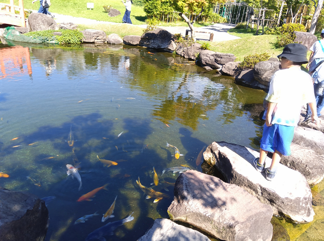 少し進むと日本庭園があり子どもたちも興味津々でした☺