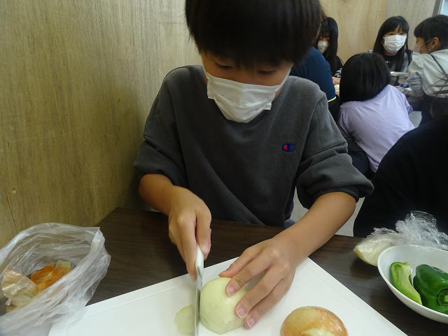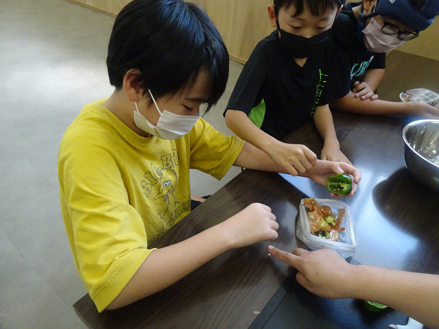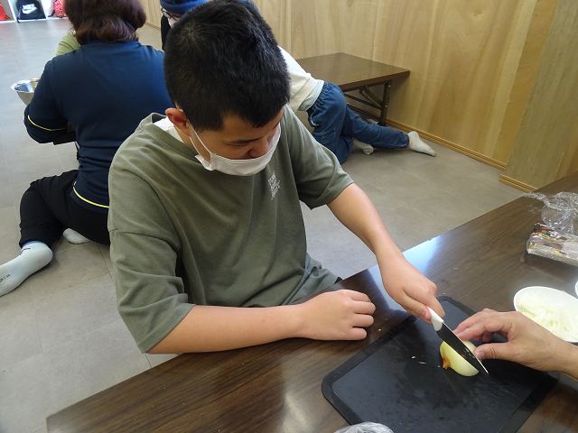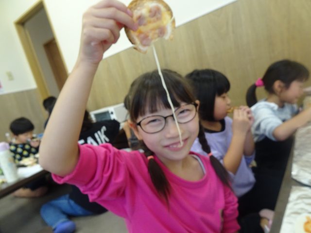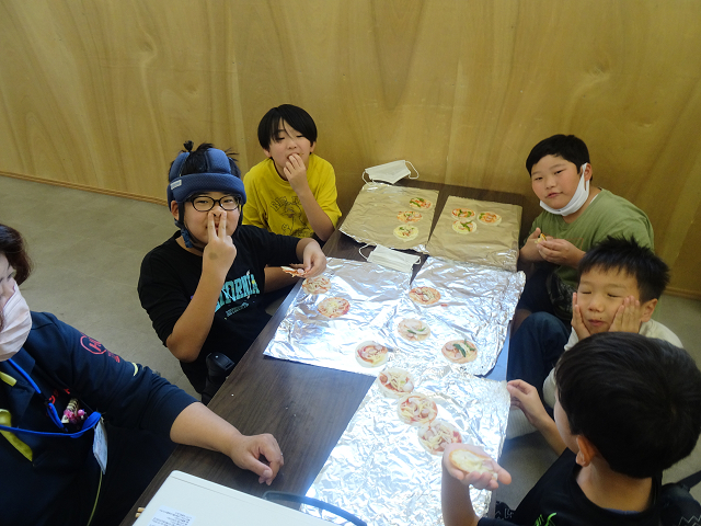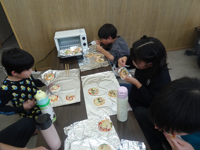 餃子の皮でミニピザを作りました!具材を自分たちで切りました。トッピングでは個性が出て見ていて面白かったです😝