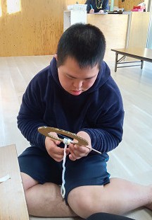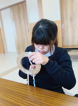 段ボールの土台にふわふわ毛糸を巻きつけます✨
