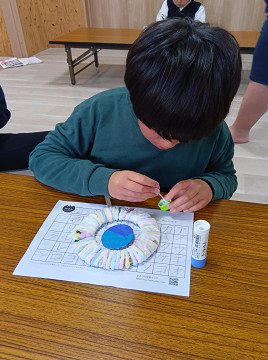 真ん中をフー!と吹くとくるくる回って楽しいリースステッキが完成しました🌸