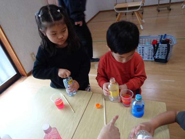余裕が出てくると自分の事だけでなく、お友だちの色や液体から固体になる変化にも興味津々👀✴
