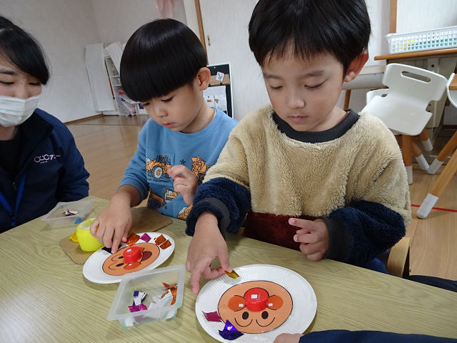 年少・年中さんは作りたい物を想像しながら時間を守って制作をしたり、