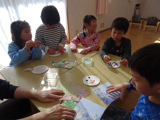 可愛い絵がたくさん🌼 時間いっぱい描きました✨ 折り紙を小さくちぎるのが上手でした🙆♂️