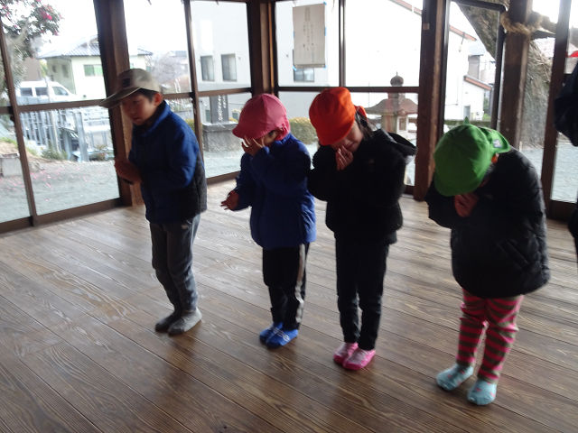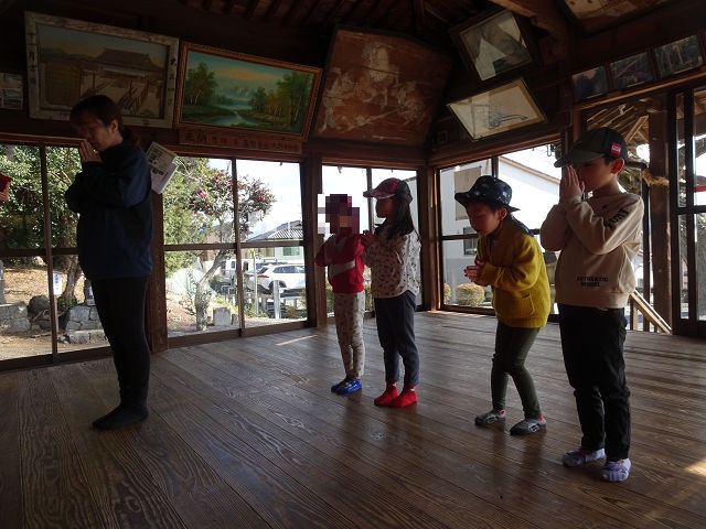 を紙芝居やイラストを使って説明し、「2礼2拍手1礼👏」の練習もして出掛けました😉