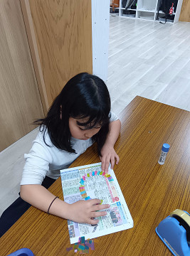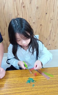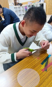 切った透明折り紙をクリアファイルにのりで貼り付けます📌